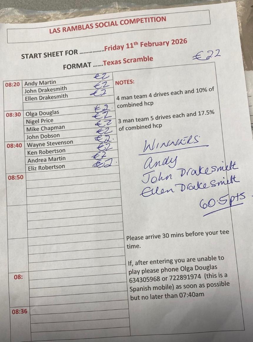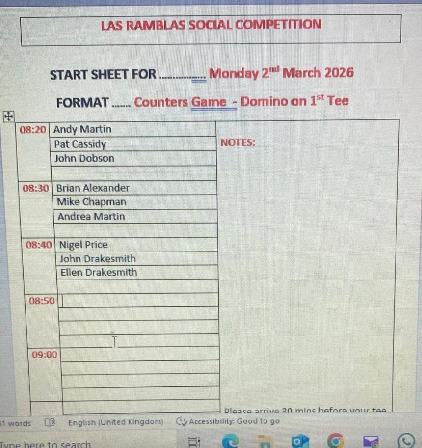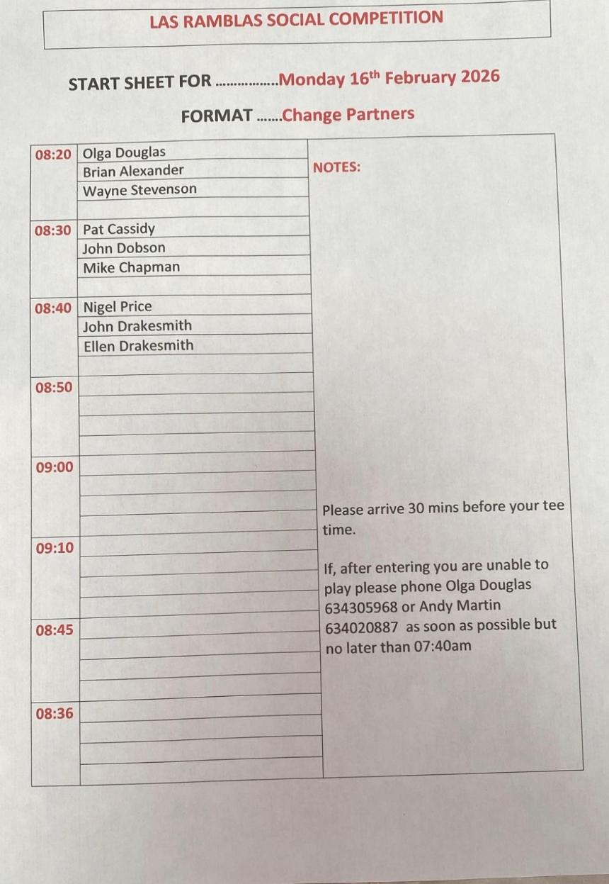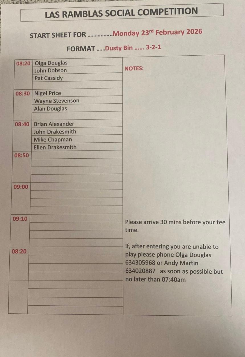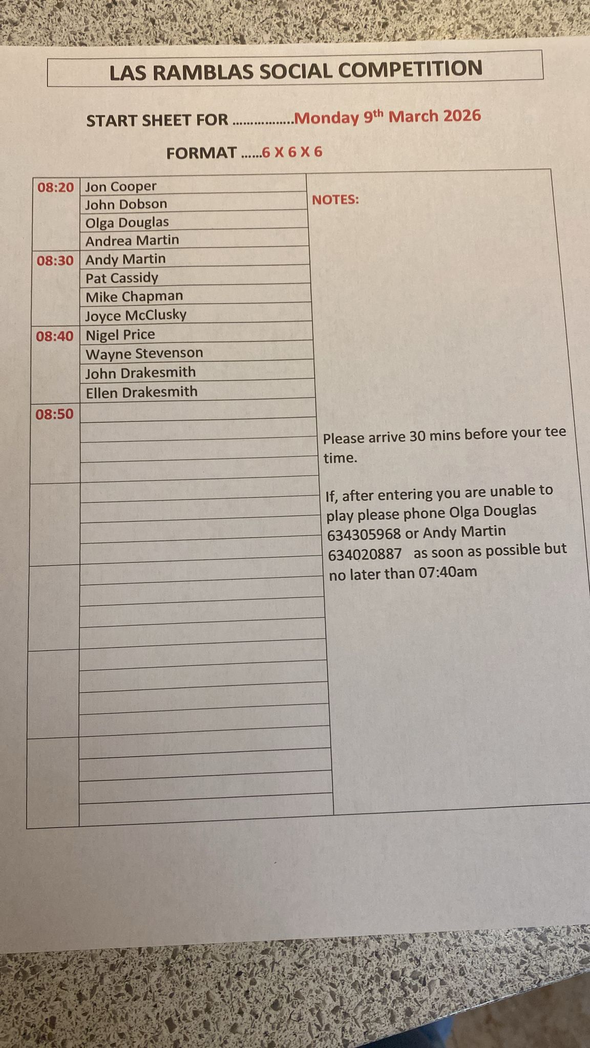 First Tee Off Time is 08.20 am Click Below for your T Time -