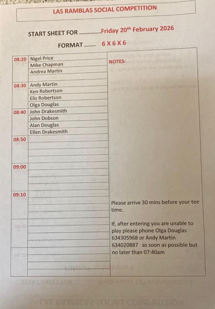 Click Below for your Start Times on Friday 20th February, 2026