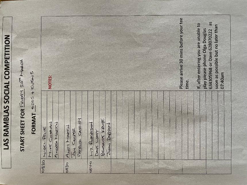 First Tee Off Time is 08.20 am Click Below for your T Time