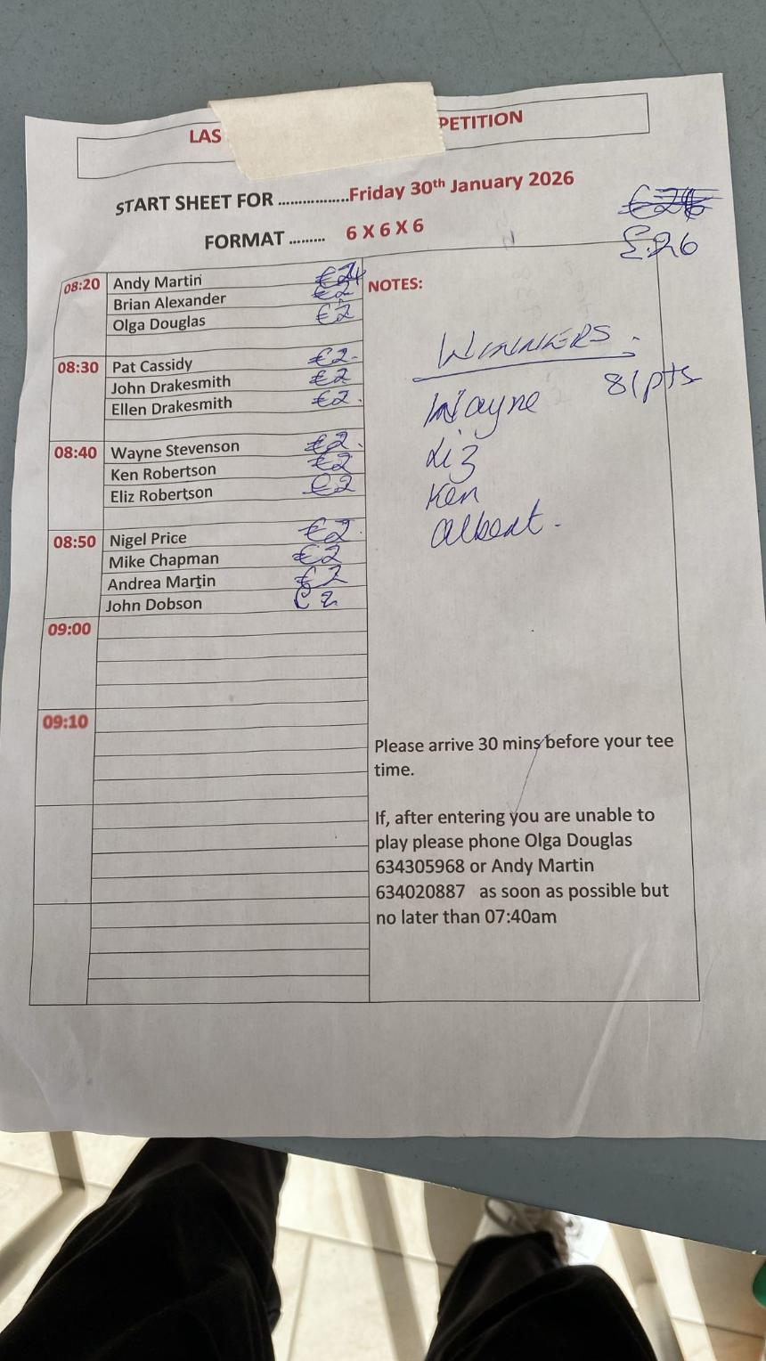 First Tee Off Time is 08.20 am Click Below for your T Time January